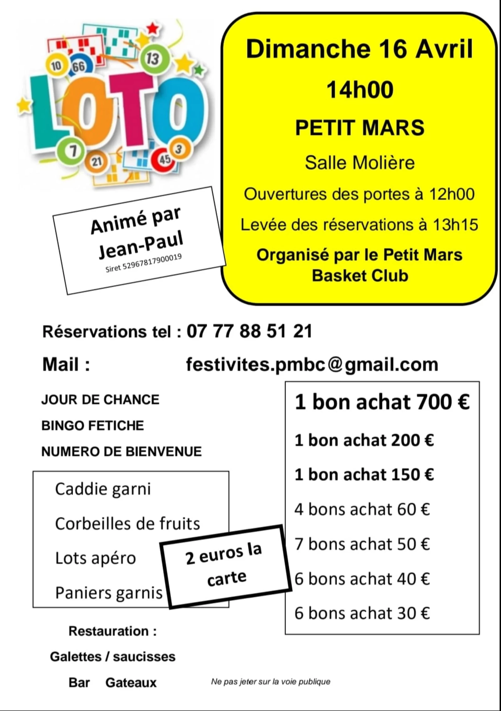 LE PETIT-MARS BASKET CLUB ORGANISE UN LOTO