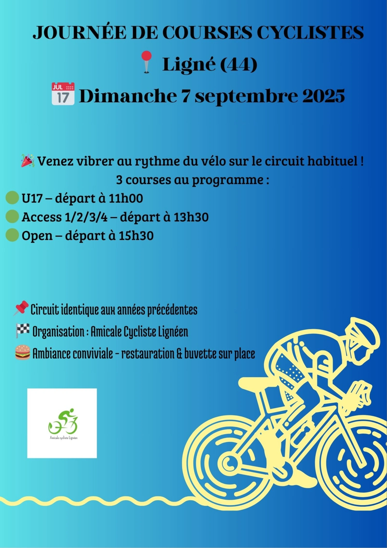 Courses cyclistes ACL – Dimanche 7 septembre 2025 à Ligné
