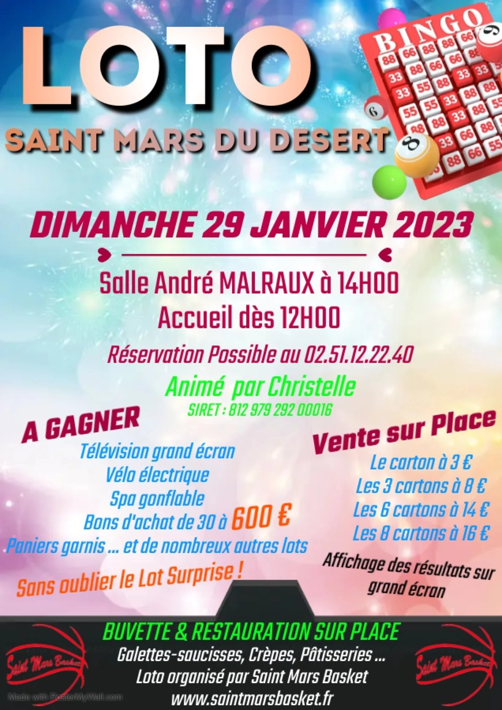 L'ASSOCIATION SAINT-MARS BASKET ORGANISE UN LOTO