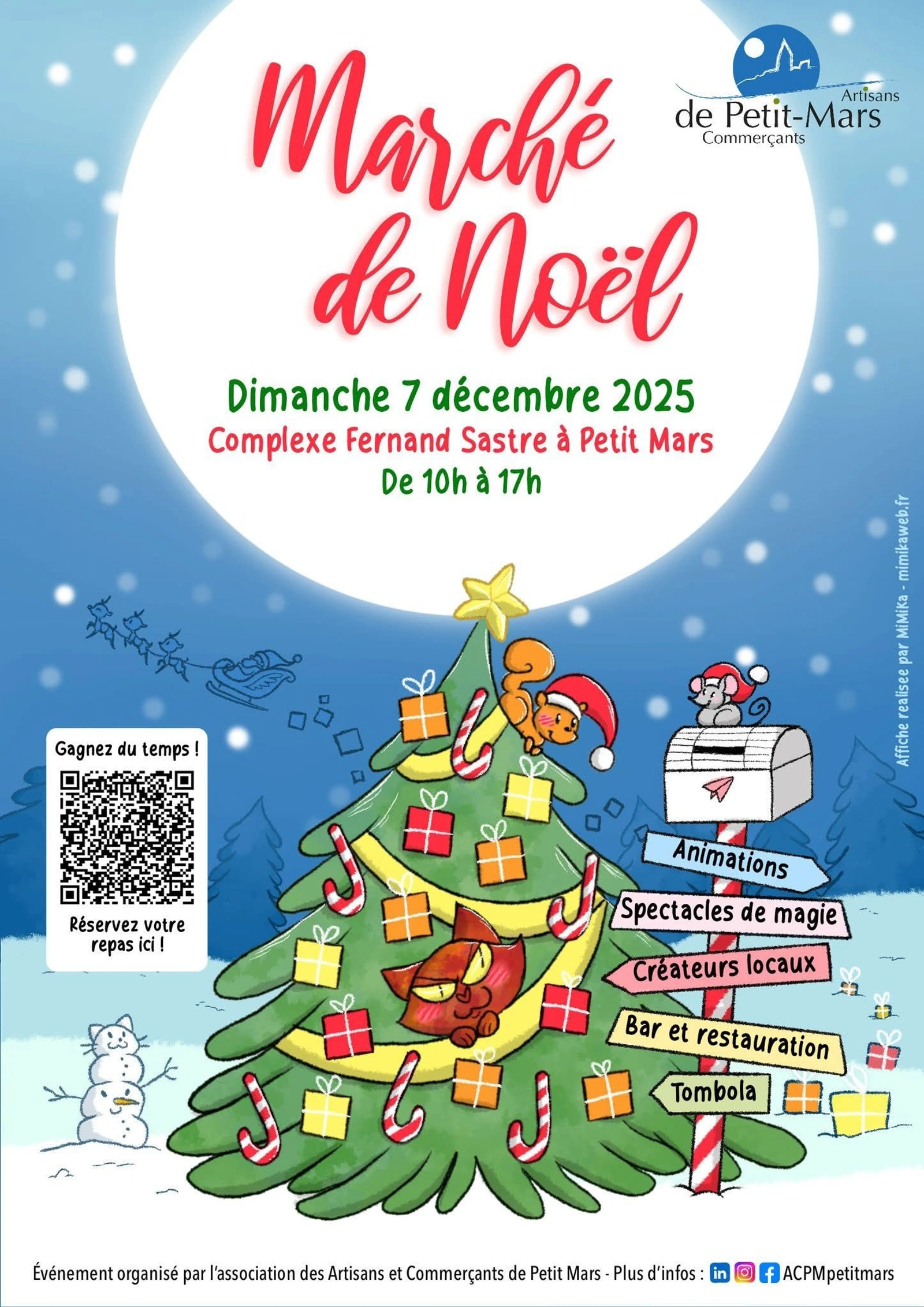 C’est avec grand plaisir que l’ACPM Association des commerçants et artisans de Petit-Mars vous convie à son traditionnel marché de Noël, ce dimanche 7 décembre 2025, de 10h à 17h, au complexe Complexe Fernand Sastre.
