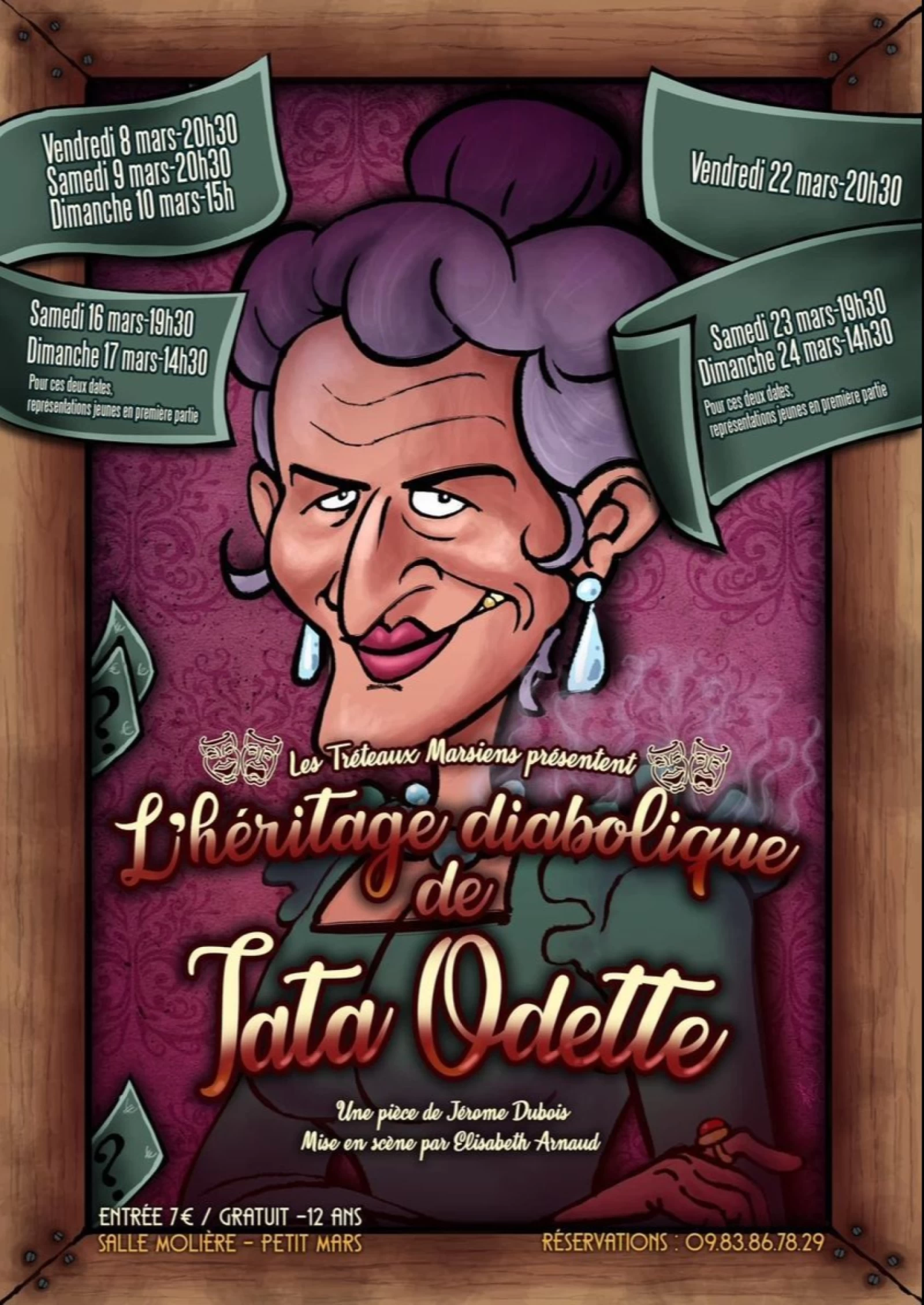 Les Tréteaux Marsiens vous proposent plusieurs pour leur représentation 2024 "L'héritage diabolique de Tata Odette" :