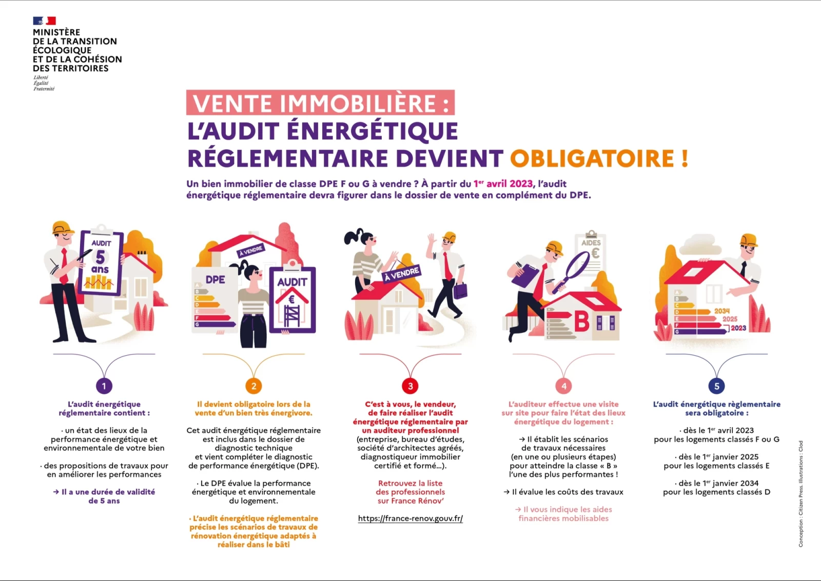 Un audit énergétique complémentaire doit obligatoirement être réalisé en complément de ce DPE et transmis à l’acheteur :
