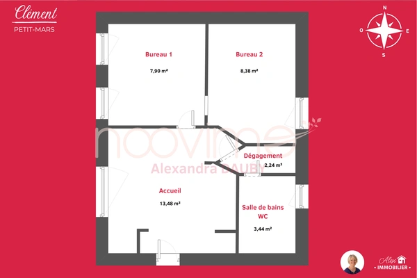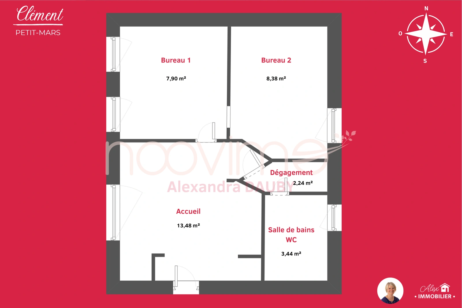 Alexandra DAUBY, Conseillère en Immobilier Noovimo à Petit-Mars, vous propose en exclusivité [Clément], un local de 35,44 m2 situé au 1er et dernier étage d'un bâtiment de 2010, avec ascenseur. En quête d'un espace fonctionnel, accessible et immédiatement disponible pour lancer ou développer votre activité ? Pour une activité commerciale ou libérale, ce local se compose :