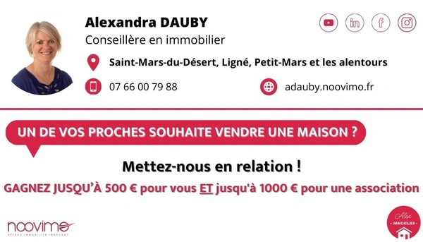 Alexandra DAUBY Conseillère en immobilier Saint-Mars-Du-Désert, Ligné, Petit-Mars et les alentours. L'estimation de votre maison, appartement ou terrain est offerte !